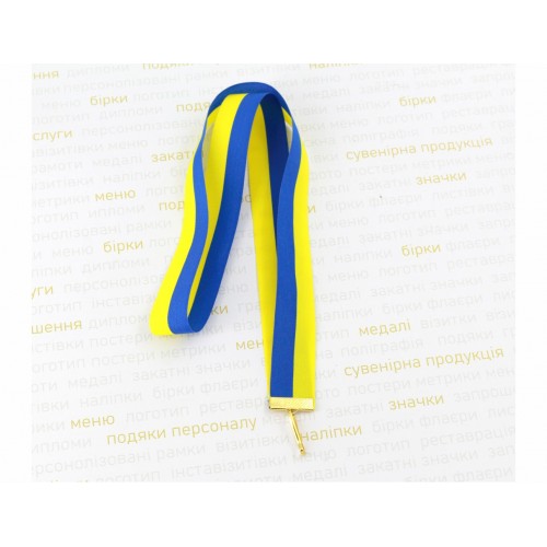 Лента для медалей и наград (ширина 20 мм), желто - синяя. Для взрослых длина – 75 см, для детей – 65 см.
