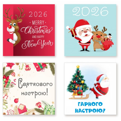 Для Вашей упаковки есть наклейки квадратной формы, компактные, небольшие 5х5см. Может быть бумага или пленка самоклейка. Каждая мелочь в упаковке имеет значение – это и привлекательность и забота не только о том, что в упаковке, но и о том как упакован Ваш товар. Заботьтесь не только о качестве товара, но и о том, как и во что упакован товар. Как говорится "Встречают по одежке...". Данный набор - ассорти из 4 видов наклеек, в наборе 36 шт. К новогодним праздникам нужно подготовиться заранее. С наклейкой Ваша упаковка будет выглядеть привлекательнее и придаст некоторую завершенность и праздничность. Печатается в листах формата А3 на качественной бумаге Raflatac или пленке Ritrama с высококачественной и четкой цветопередачей и всех деталей изображения. Можно использовать для наклейки на разных поверхностях: стекло, пластик, дерево, бумага, металл.