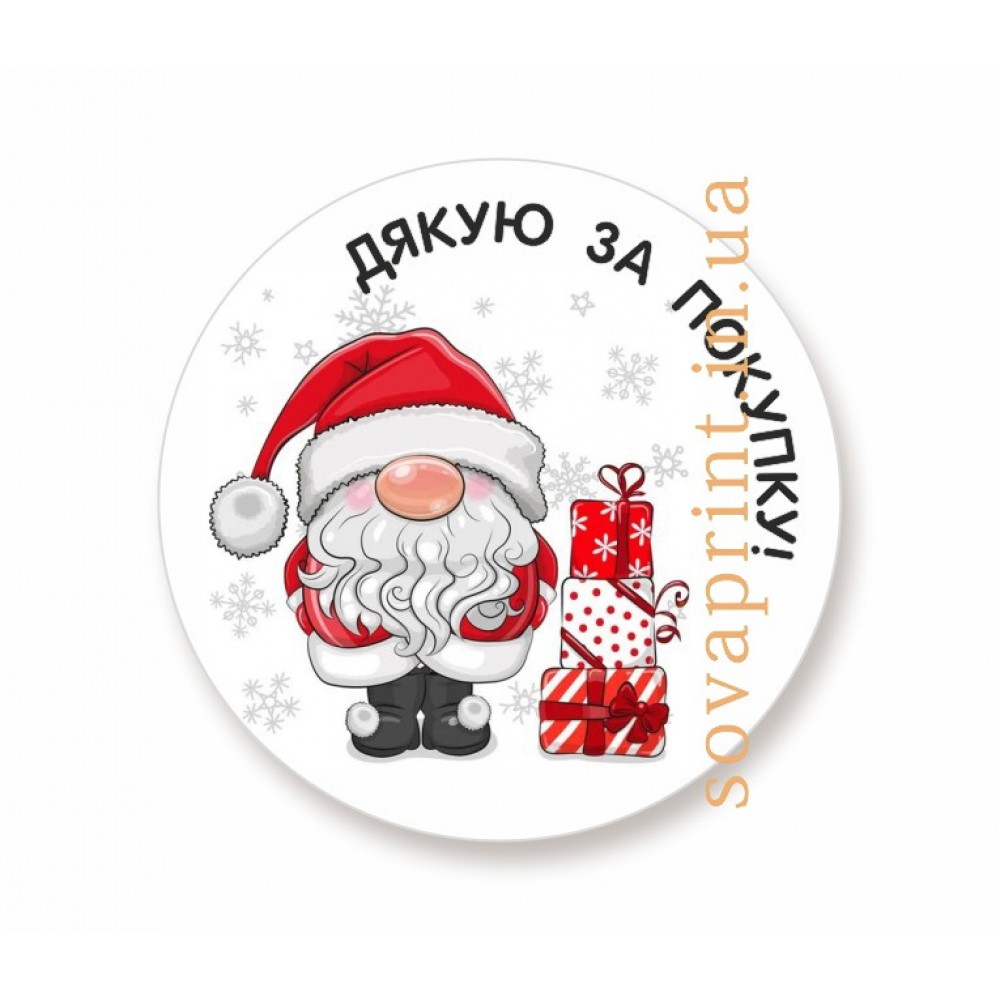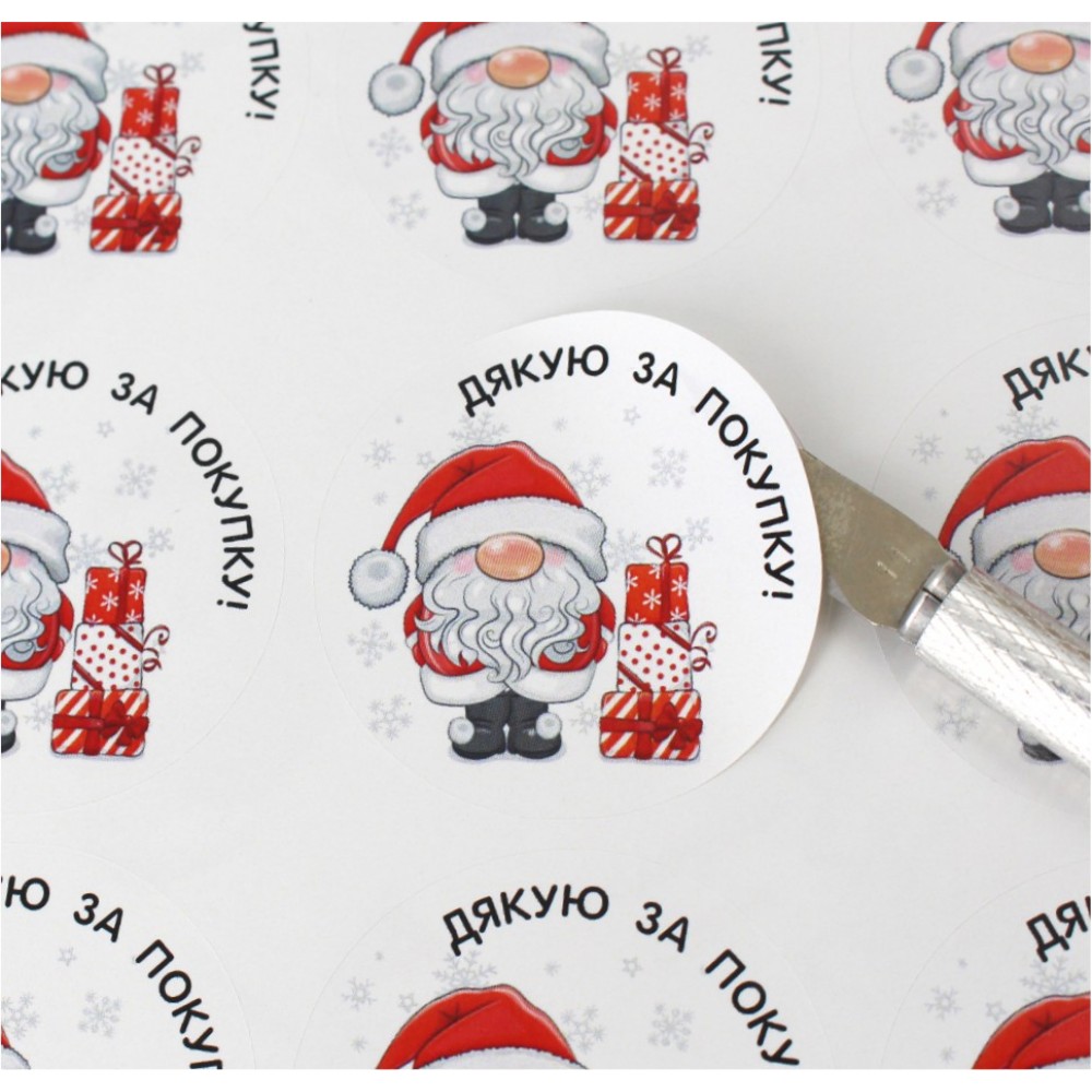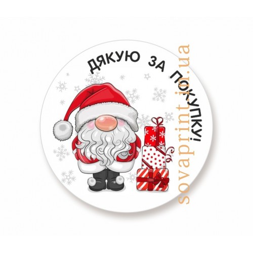 Для Вашей упаковки новогодняя наклейка с надписью "Дякую за покупку". Поблагодарить можно по-разному, например с помощью наклейки, а еще если в канун Нового года... у нас есть тематические наклейки. Добавьте своей упаковке изюминку )), это украсит Ваш товар и придаст упаковке завершенность и большую привлекательность. Наклейка может быть любого размера (размер/количество в таблице ниже). Печатается в листах формата А3 на качественной бумаге Raflatac или пленке Ritrama с высококачественной и четкой цветопередачей и всех деталей изображения. Можно использовать для наклейки на разных поверхностях: стекло, пластик, дерево, бумага, металл.