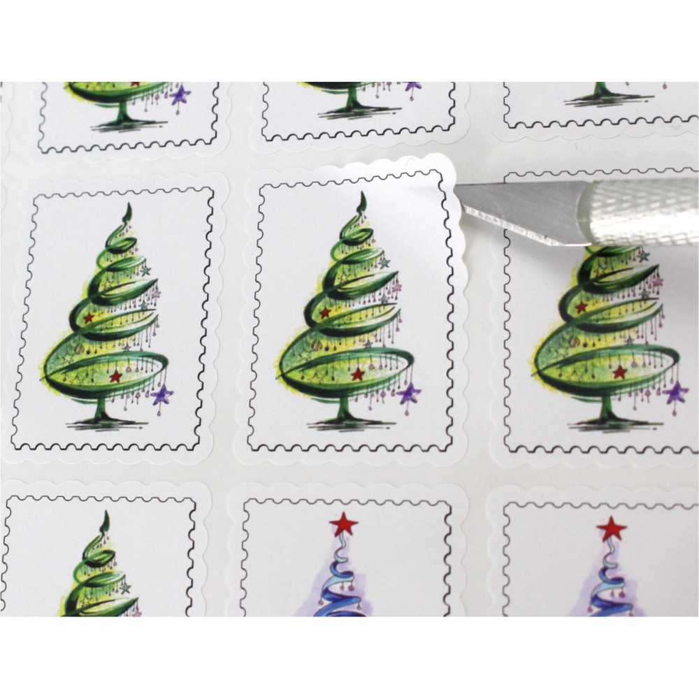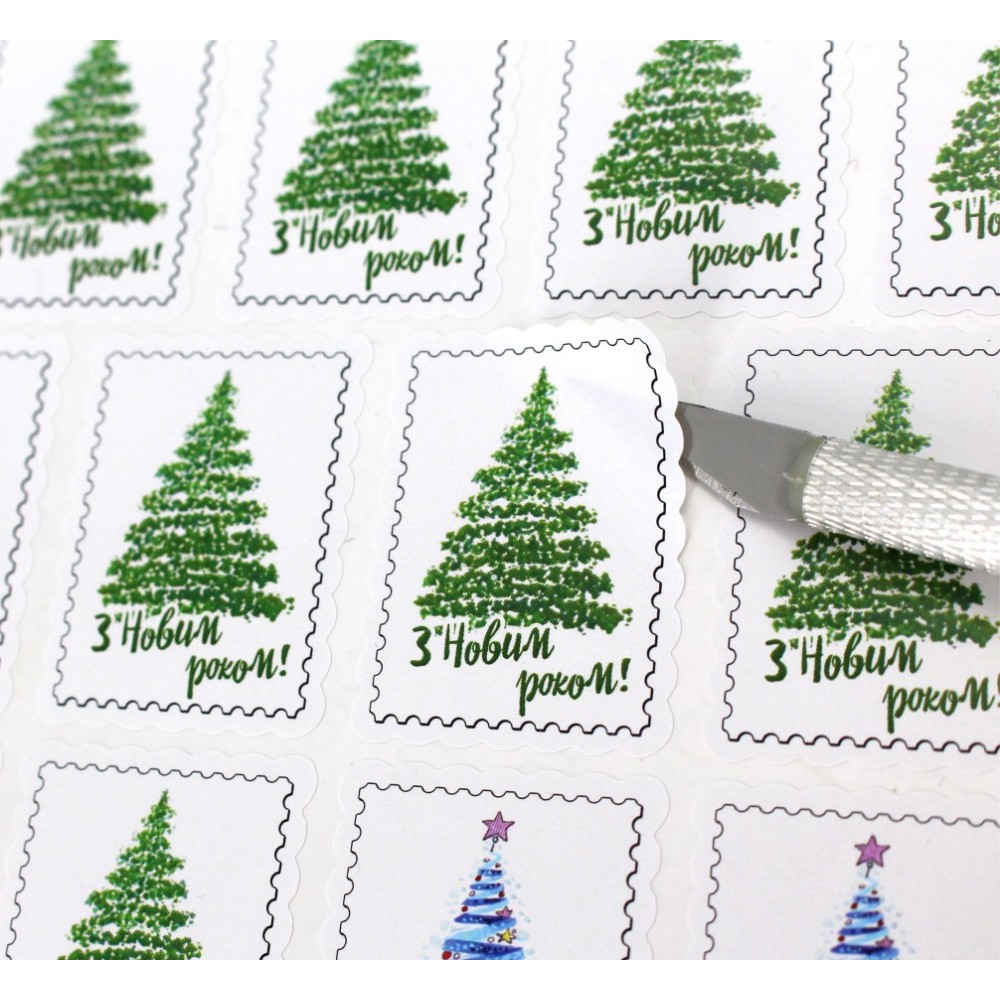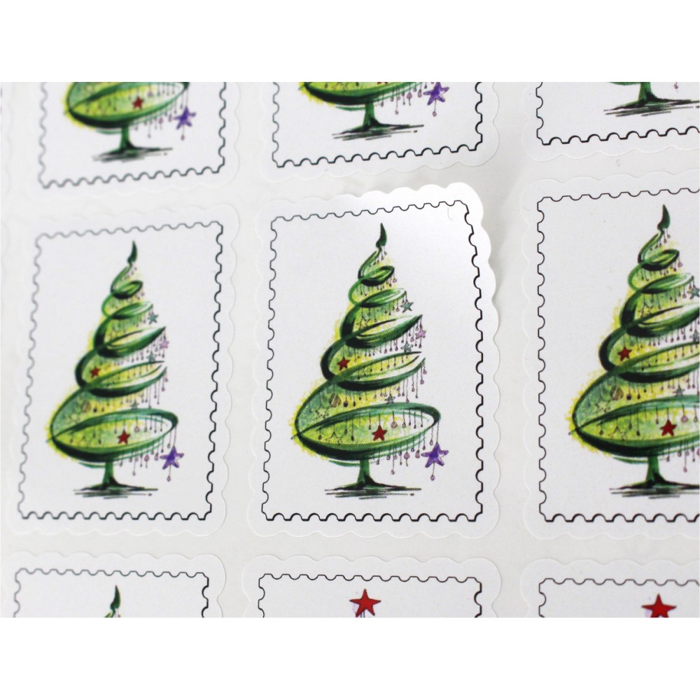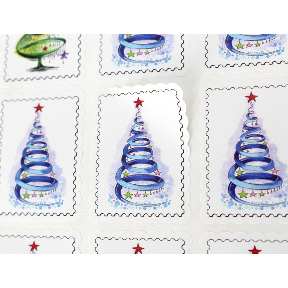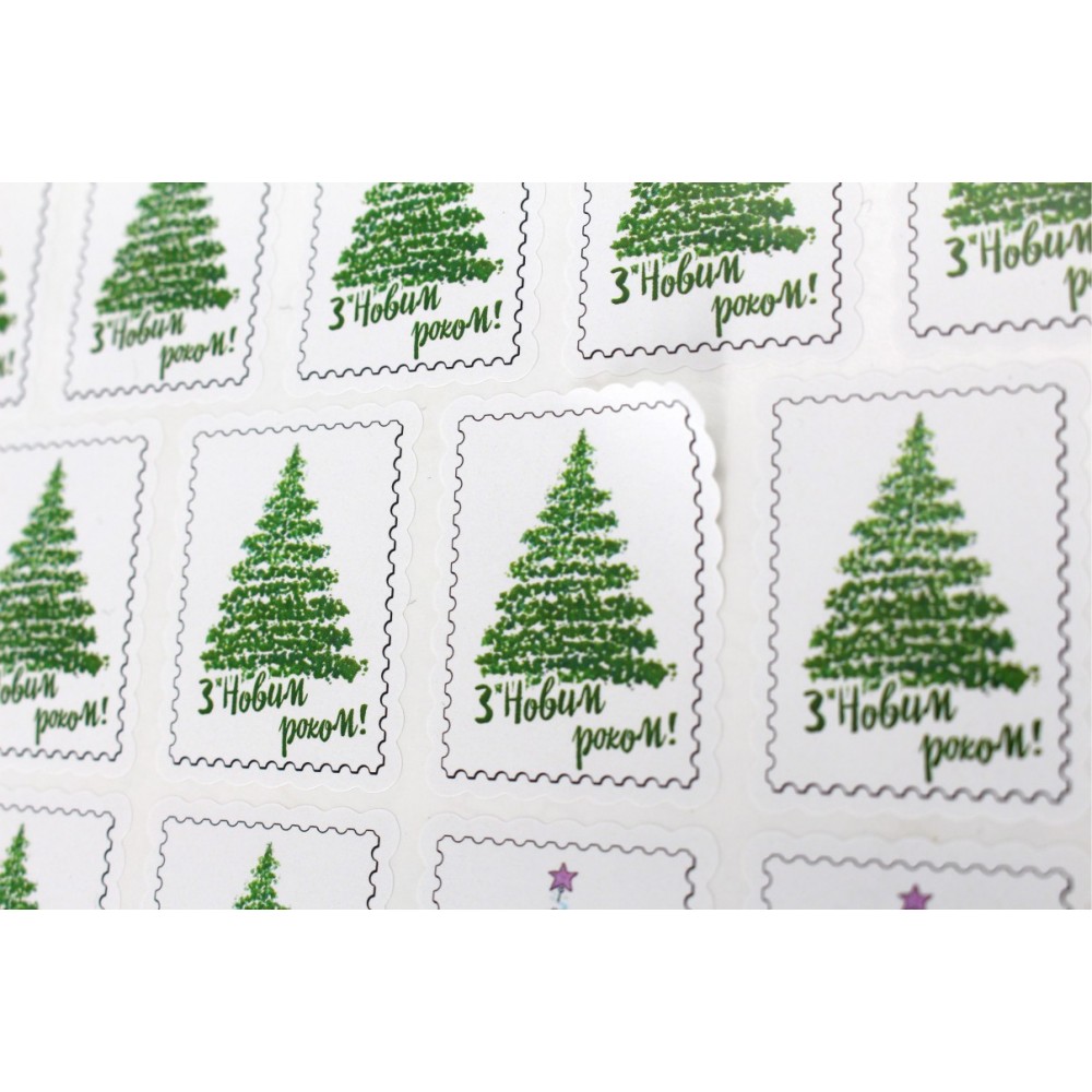 Наклейки - марки "Ёлочки" 30х40мм, набор 19шт