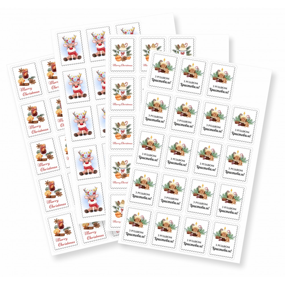 Классные наклейки в виде марок 3х4см (можно сделать любого размера по запросу). Набор может быть один из 4 видов (всего 19шт). Подготовьтесь к праздникам заранее! Печатается на качественной бумаге самоклеящейся Raflatac с высококачественной и четкой цветопередачей и всех деталей изображения. Можно использовать для наклейки на разных поверхностях: стекло, пластик, дерево, бумага, металл.