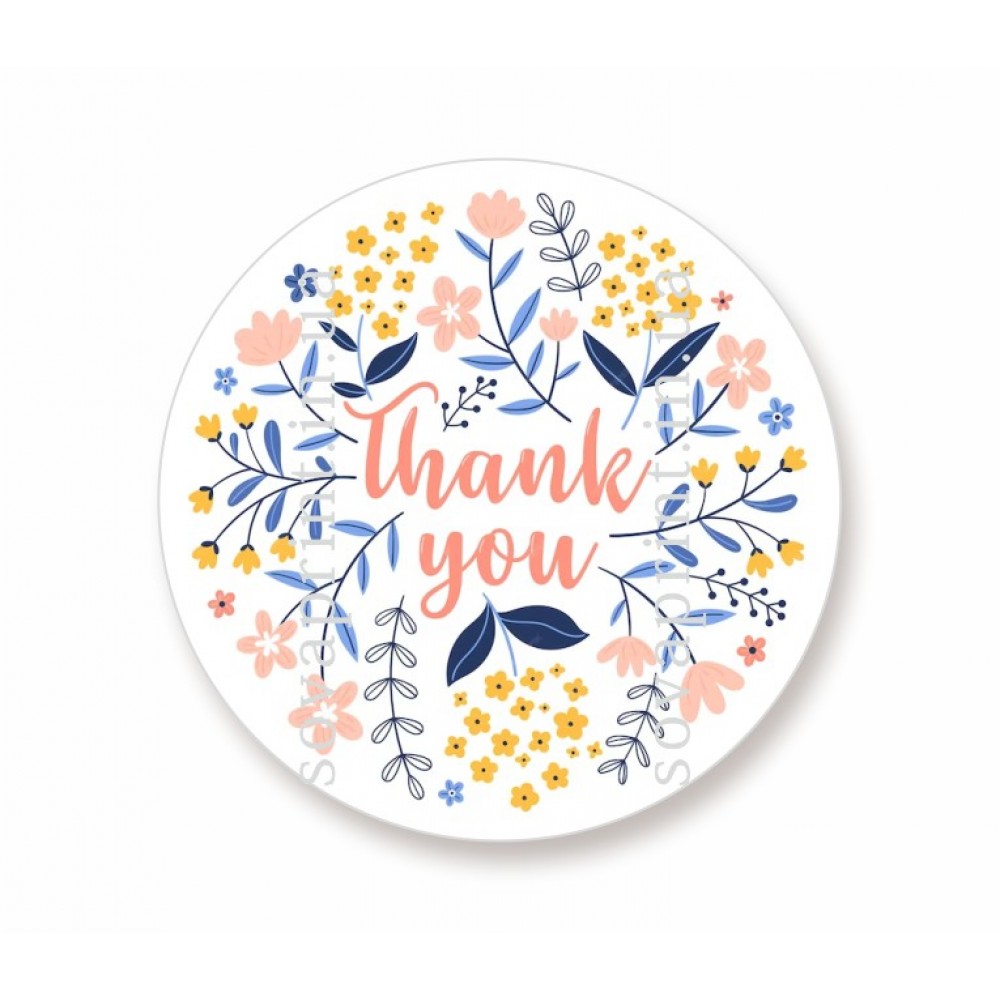 Яркие весенние наклейки на упаковку с надписью "Thank you" служит декором, а также выражение благодарности клиенту/покупателю/заказчику. А еще наклейка придаст Вашему товару завершенность и большую привлекательность. Мы предлагаем большой ассортимент заготовок дизайна наклеек на разную продукцию. Может быть любого размера (размер/количество в таблице ниже). Печатается на листах А3 формата на качественной бумаге Raflatac с высококачественной и четкой цветопередачей и всех деталей изображения. Можно использовать для наклейки на разных поверхностях: стекло, пластик, дерево, бумагу, металл.