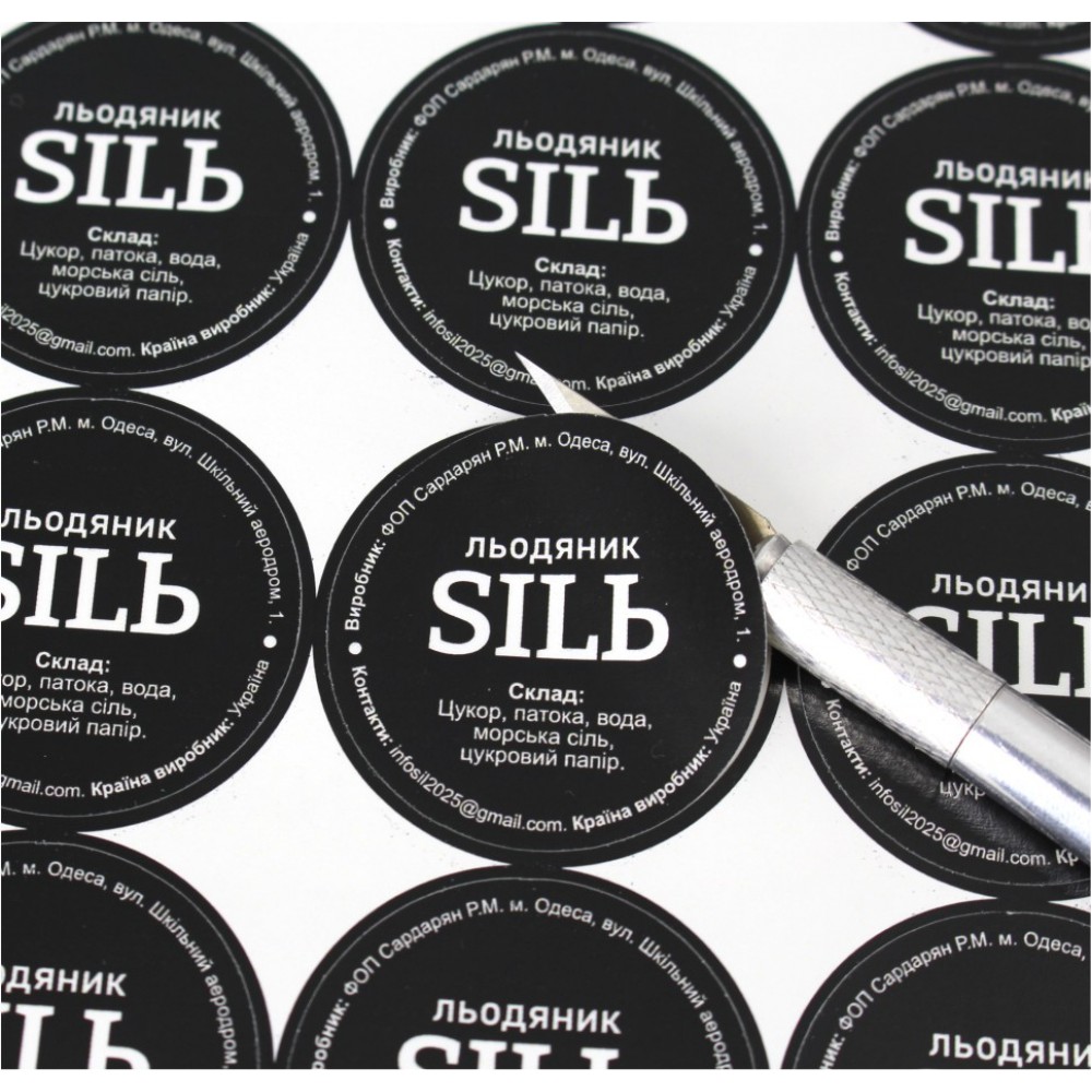 Если у Вас есть собственный дизайн и хотите напечатать у нас наклейки, достаточно выбрать размер, материал и прислать нам свой дизайн или пожелания по дизайну. Ознакомьтесь с правилами подачи макетов на цифровую полноцветную печать! Единовременно Вы оплачиваете подготовку макета к печати (имеется ввиду раскладка). При повторном заказе Ваш макет уже подготовлен к печати, и Вы оплачиваете только печать. Заказ печати от 300грн (одного вида наклеек) макет раскладываем на печать бесплатно. Если у Вас несколько макетов (видов наклеек), каждый оплачивается по 50грн., заказ печати от 300грн., оплачиваете как за один макет, при условии, что размер и форма идентичные. Печатаются наклейки на листах формата А3 на качественной бумаге самоклейке Raflatac, или самоклеящейся пленке Ritrama с высококачественной и четкой цветопередачей и всех деталей изображения. Можно использовать для наклейки на разных поверхностях: стекло, пластик, дерево, бумага, металл. Печать черным наносится цифровым способом печати. Есть некоторые требования для подготовки макета для печати черным на прозрачной пленке, цвет по CMYK должен быть 100/100/100/100. Печать белым на прозрачной пленке происходит методом УФ  (Ультрафіолетовой) печати. Ознакомьтесь с информацией подачи макетов к этому виду печати. УФ печать не ламинируется!!! Если Вам нужна дополнительная защита наклейки, этот метод печати предусматривает УФ-лакировку. Для этого вида печати минимальный заказ от 3-х листов. Ламинированная продукция тиражируется от 2-х листов одного вида ламинации (мат/глянец) или стоимость одного ламинированного листа увеличивается на 60%.