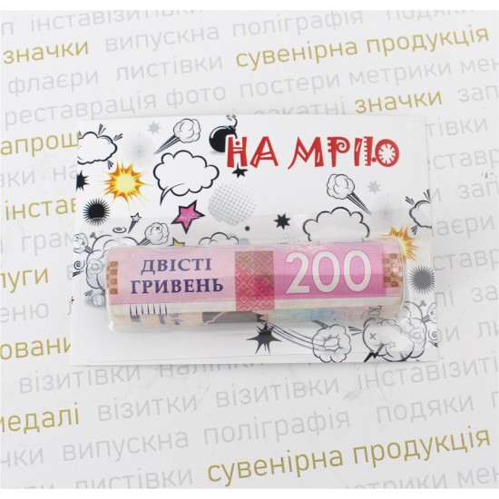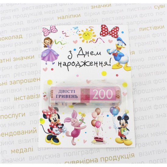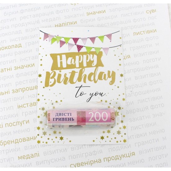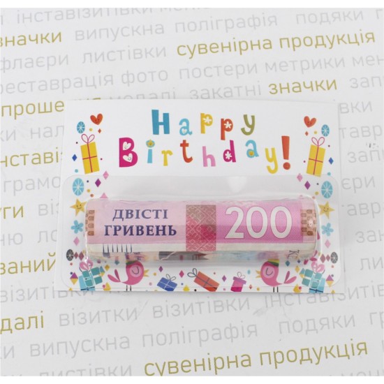 Универсальная открытка для денег с надписью "Вітаю!". Дарить можно на День рождения. Открытка с блистером для денег (идеально подходит для любой купюры). Блистер на двустороннем скотче. Инструкция по использованию: Сворачиваете купюру, кладете в блис..