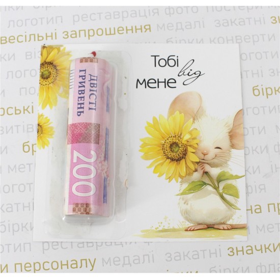 Открытка для денег – идеальный выбор для тех, кто хочет подарить деньги красиво исо вкусом. Дарите деньги стильно и изящно с помощью наших открыток. Открытка надписью "Для тебе!" подойдет для любого случая подарить деньги: на День рождения, юбилея, с..