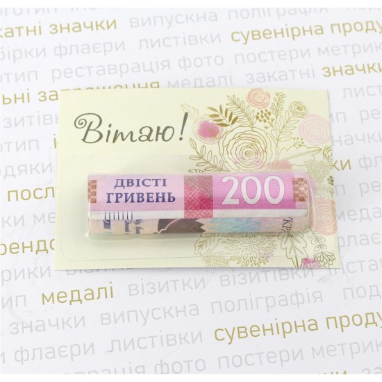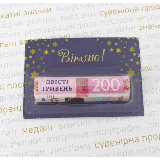 Открытка для денег с надписью "Вітаю" - оригинальная подойдет для любого случая подарить деньги: День рождения, День учителя, Юбилей или любой другой праздник или случай. Открытка с блистером для денег (идеально подходит для любой купюры). Блистер на..