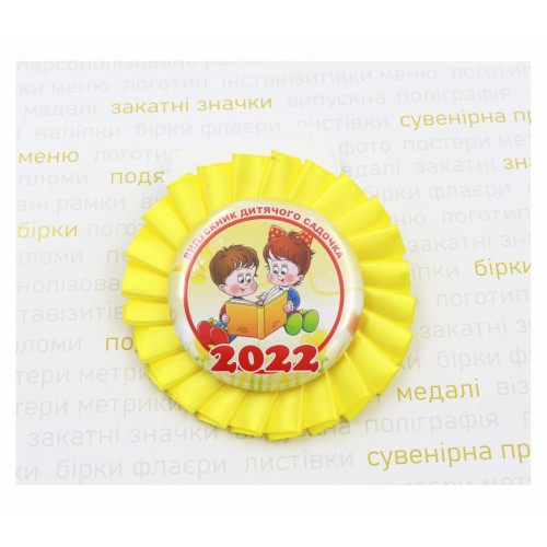sovaprint изготавливает значки/медали под заказ. У нас Вы можете заказать значки/медали для выпускного праздника в садике, школе или для другого заведения. Представляем большой ассортимент дизайна закатных значков/медалей для Ваших выпускников. Такой сувенир на долго сохранит Вам и Вашему ребенку приятные воспоминания. Вы можете заказать стандартный дизайн или по желанию добавить название ДНЗ и группы, а также вместо картинки вставить фото ребенка (+15 грн. к стоимости каждого именного значка), по необходимости производится небольшая корректировка фото по яркости-контрасту-резкости. (Важно!!! Требования к фото по ссылке). Вся информация в закатном значке/медали редактируемая! Девочек и мальчиков можно разделить цветом (например красный и синий), а также словом ВЫПУСКНИК / ВЫПУСКНИЦА. Также, значок можно дополнительно украсить розеткой из лент. Значок может легко трансформироваться в медаль если добавить ленту. Цвет можно выбрать перейдя по ссылке. Изготовление закатных значков/медалей занимает 3-5 рабочих дня (сроки зависят от тиража и загруженности).