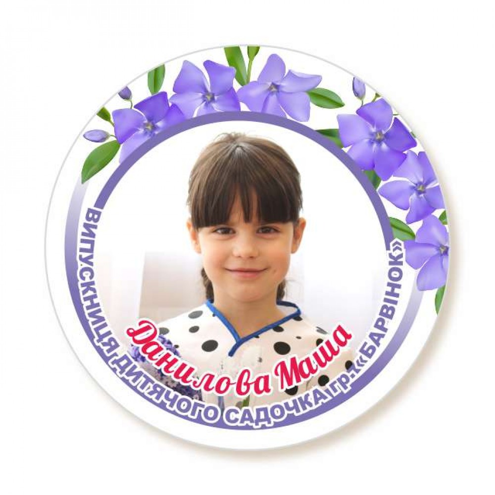 У нас представленный большой ассортимент дизайна закатных значков/медалей для Ваших маленьких выпускников. Такой сувенир на долго сохранит Вам и Вашему ребенку приятные воспоминания о детском садике. Вы можете заказать стандартный дизайн или по желанию добавить название ДНЗ и группы, а также вместо картинки вставить фото ребенка (+15 грн. к стоимости), по необходимости производится небольшая корректировка фото по яркости-контрасту-резкости. (Важно!!! Требования к фото по ссылке). Вся информация в закатном значке/медали редактируемая! Девочек и мальчиков можно разделить цветом (например красный и синий), а также словом ВЫПУСКНИК / ВЫПУСКНИЦА. Также, значок можно дополнительно украсить розеткой из лент. Значок может легко трансформироваться в медаль если добавить ленту. Цвет можно выбрать перейдя по ссылке. Изготовление закатных значков/медалей занимает 3-5 рабочих дня (сроки зависят от тиража и загруженности). Стоимость в товаре указана при заказе от 10шт.
