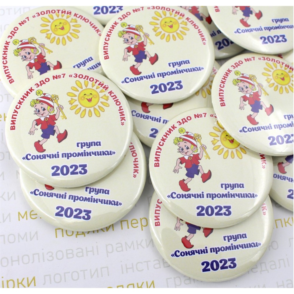 Значки с тематикой "Золотой ключик" 58мм. У нас Вы можете заказать как стандартные, так и именные. К именному значку/медали можно добавить название ДНЗ и группы, имя и фамилию. Всю информацию на закатном значке/медали можно редактировать. Также, значок можно дополнительно украсить розеткой из лент. Значок может легко трансформироваться в медаль, если добавить ленту. Цвет можно выбрать перейдя по ссылке. Изготовление  закатных значков/медалей занимает 3-5 рабочих дня (сроки зависят от тиража и загруженности). Стоимость в товаре указана при заказе от 10шт