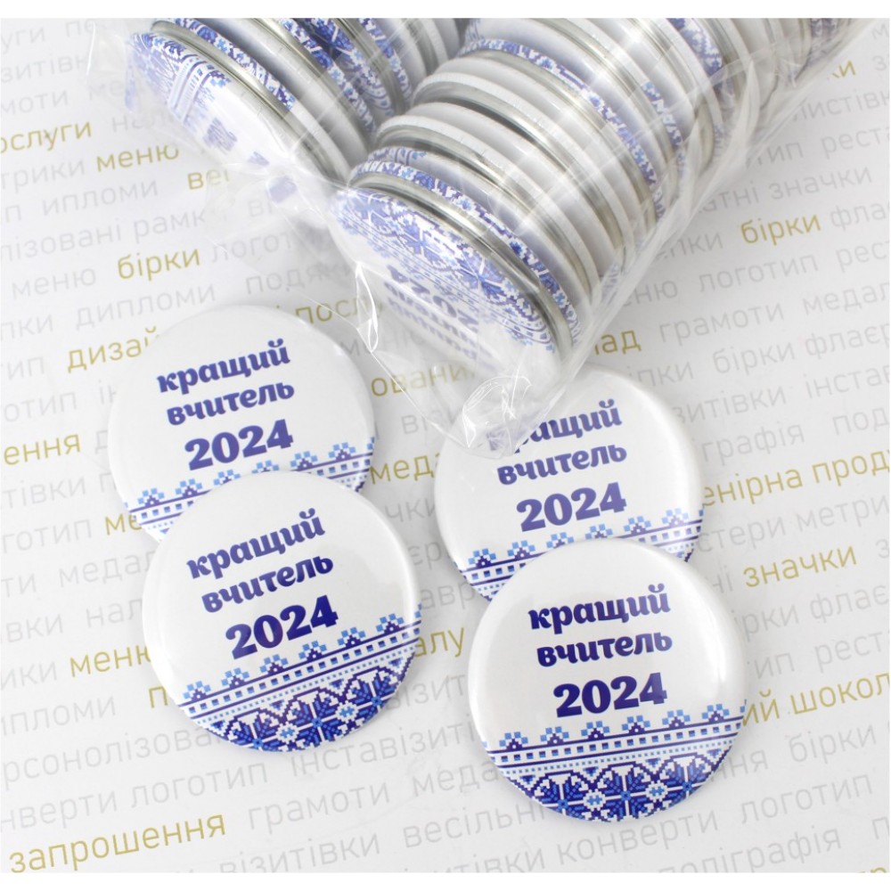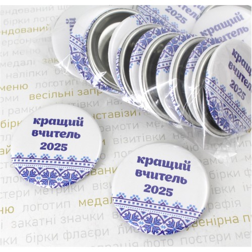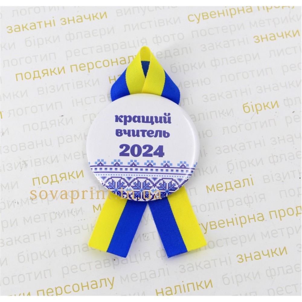 Для лучшего учителя есть вот такой значок с надписью лучшему учителю и год. Значок может быть именным или стандартным. Значок может легко трансформироваться в медаль если добавить ленту. Цвет можно выбрать перейдя по ссылке. Изготовление закатных значков/медалей занимает 3-5 рабочих дня (сроки зависят от тиража и загруженности). Стоимость в товаре указана при заказе от 10шт.