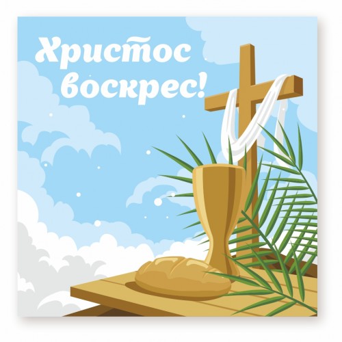 Листівка з написом "Христос воскрес!" Друкуються на щільному крейдованому матовому папері. Листівка може бути іншого розміру за запитом. Напис може бути на будь-якій мові (індивідуальне замовлення). На листівку можна додати будь-який Ваш текст: телефон, адресу, сайт, логотип тощо (послуга платна). Це зображення можна використати на бірках або наліпках.