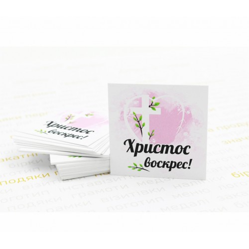 Листівка з написом "Христос воскрес!". Надруковані на щільному крейдованому папері (350г/м2). Це зображення можна використати на бірках або наліпках.