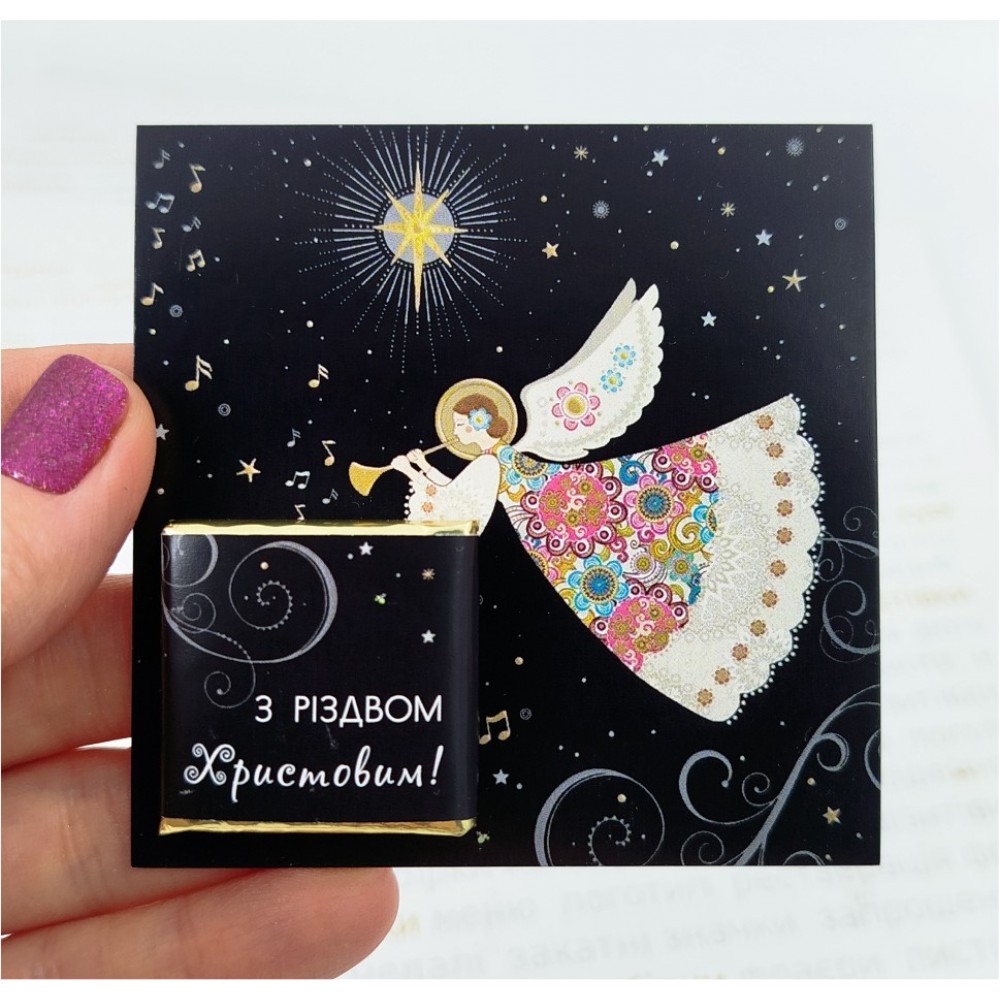 Міні шоколадки на Різдвяній листівці