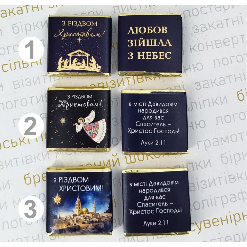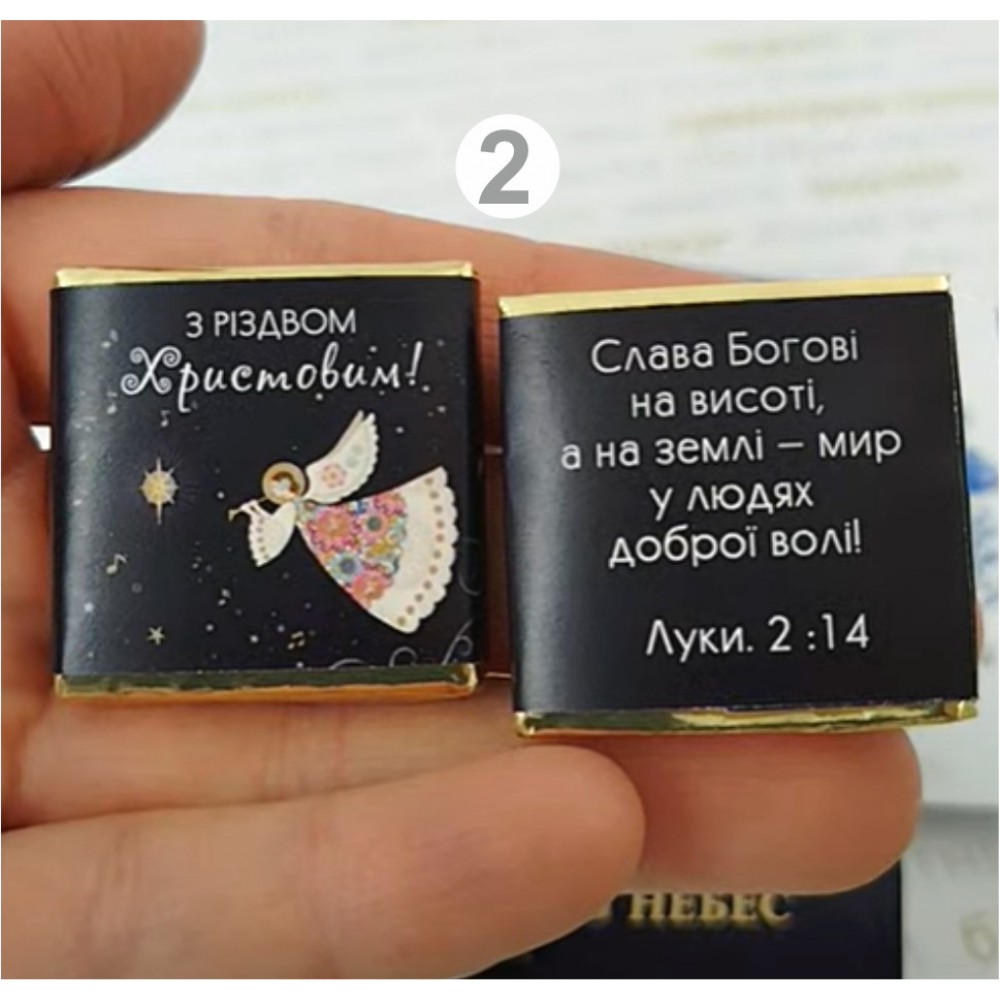 Солоденьке привітання зі святом. Оригінально та солодко. Підійде для вкладнання в замовлення або персонального вітання. На звороті може міститись будь-яка Ваша інформація....Вигідно для Вас та приємно клієнту/замовнику/відвідувачу/покупцю/другу.... Повнокольоровий друк. Розмір шоколадки 32х32х4,5мм, вага 4,5г або 5г. Фольга може бути золото або срібло. Також вибір молочний шоколад або чорний. Термін зберігання 10-12 міс. Зберігання при  температурі 18-22 С˚ та відносній вологості повітря 70-80%.  Додавання інформації - платно (при замовленні від 500шт - безкоштовно). Вартість в товарі вказана при замовленні від 200шт.