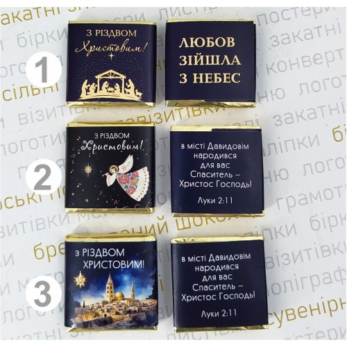Шоколад на листівці (планшетці) 50х90мм (розмір візитки)