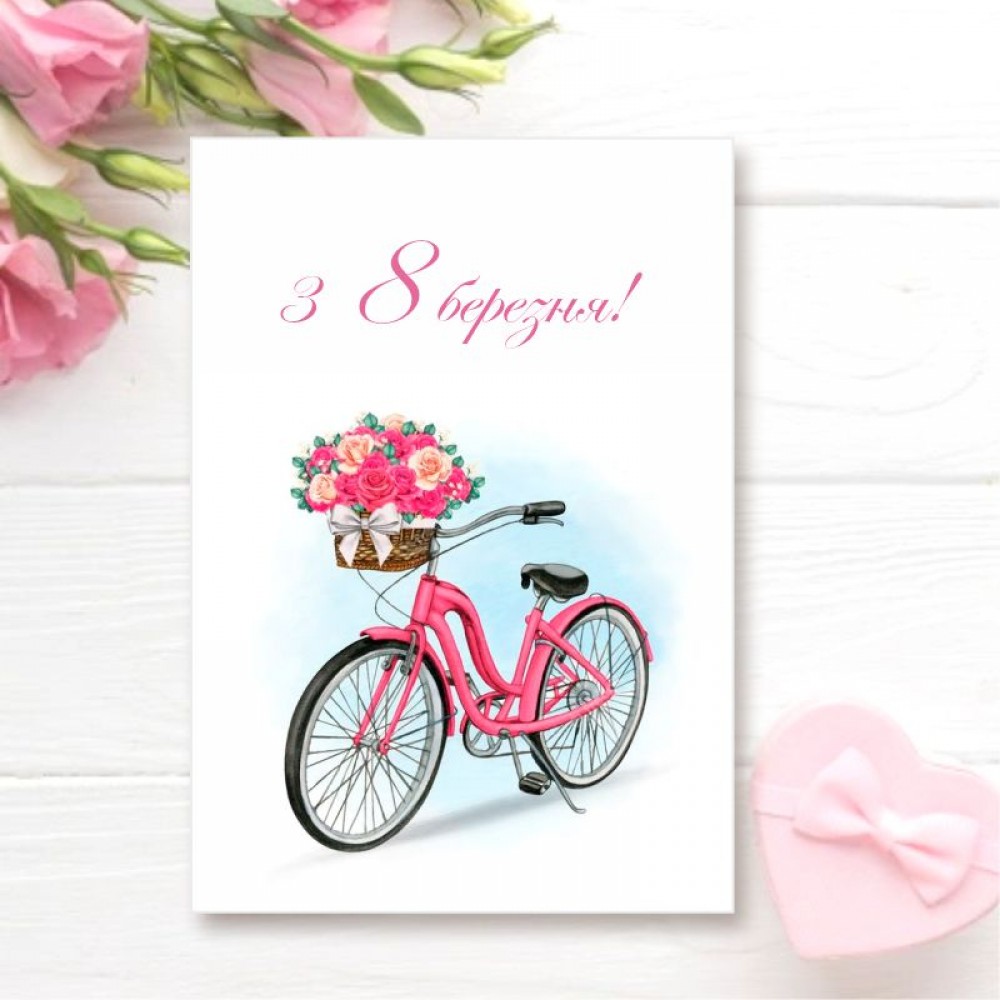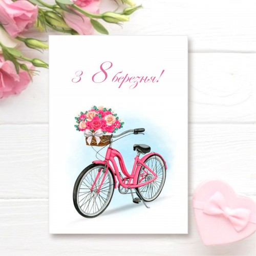 Листівка з привітанням зі святом 8 березня без лишніх деталей та слів... Також така листівка може бути прекрасним компліментом в товарі для клієнтів від продавця або виробника. Надруковані на щільному крейдованому папері. На листівку можна додати будь-який Ваш текст: адресу, логотип, номер телефону тощо (послуга платна). Це зображення можна використати на бірках або наліпках.