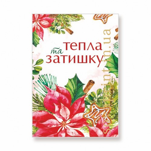 У нас можете придбати листівки для пакування товарів на різну тематику. Пропонуємо  Новорічно-Різдвяну листівку з написом "Тепла та затишку". Наш асортимент постійно поповнюється новими листівками різної тематики. Друкуються на щільному крейдованому папері. На листівку можна додати будь-який Ваш текст: телефон, адресу, сайт, логотип тощо (послуга платна). Це зображення можна використати на бірках або наліпках.