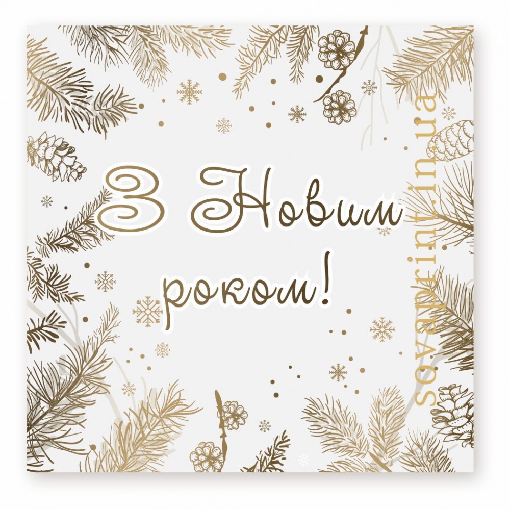 Вітальна листівка з Новим роком. Підійде для вкладання в товар. Дрібничка, а приємно покупцю, так як це є знак уваги. Наша галерея листівок постійно поповнюється новими листівками різної тематики. Друкуються на щільному крейдованому матовому папері. Листівка може бути іншого розміру за запитом. Напис може бути на будь-якій мові (індивідуальне замовлення). На листівку можна додати будь-який Ваш текст: телефон, адресу, сайт, логотип тощо (послуга платна). Це зображення можна використати на бірках або наліпках.