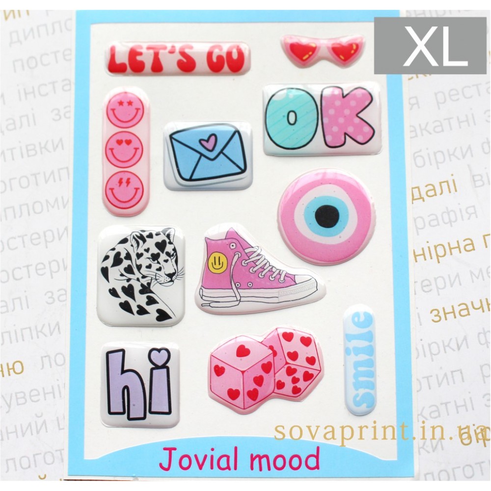 Об’ємний стікерпак "Jovial Mood" – настрій у кожній деталі. Створіть яскравий настрій із об’ємним стікерпаком "Jovial Mood"! Цей набір наповнений позитивом, ідеально підходить для тих, хто хоче додати у своє життя більше хорошого настрою та яскравих моментів. Замовляйте зараз і наповнюйте свої речі настроєм. Стікерпак має розмір 105х148мм (А6)