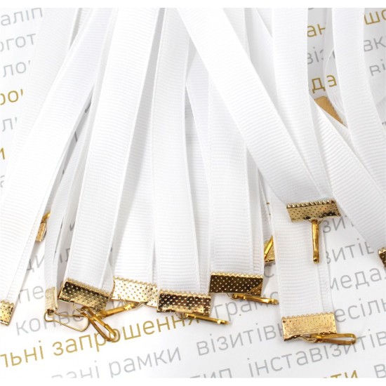 Стрічка для медалей та нагород з репсу (ширина 12 мм), біла. Для дорослих довжина - 75 см, для дітей - 65 см.