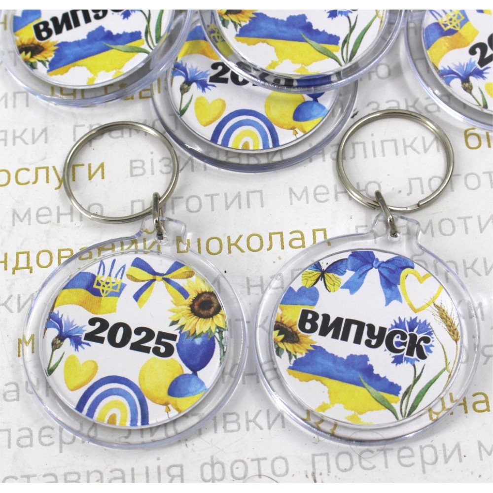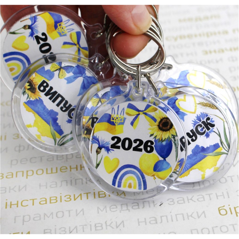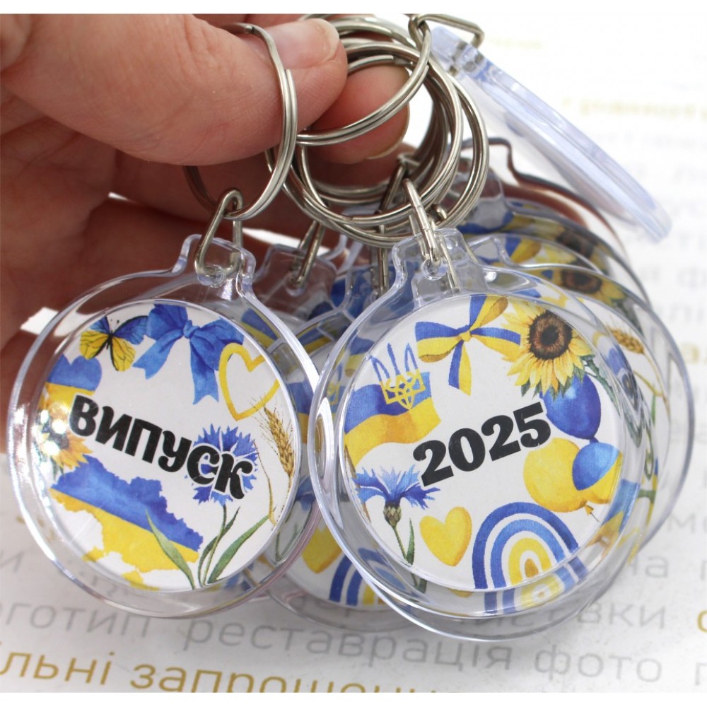Брелок не лише слугуватиме як чудова прикраса для ключів або сумки, але й стане чудовим способом зберегти згадку про важливий момент у житті випускника. Брелок двосторонній (з однієї сторони рік, з іншої випуск. Це стандарт). Може бути іменний (на всіх брелках однакова інформація). Або іменний+ПІБ (з іменами дітей, або будь-яка змінна, текстова інформація) .