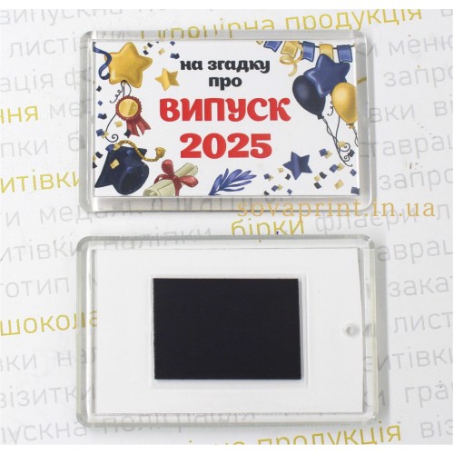 Оригінальний подарунок, який залишить приємну згадку про випускний день. Ідеальний варіант для випускників, вчителів та однокласників як пам’ятний сувенір про шкільні роки. Нехай приємні спогади залишаються не тільки в серці, а й на холодильнику! Кріпиться на холодильник або будь-яку іншу металеву поверхню. Розмір 77х52мм. Сам магніт вініловий - не залишає подряпин на металевій основі. Магніт може бути з уже представленим дизайном або будь-яким дизайном з нашого сайту, або ж це може бути під замовлення з Вашим особистим дизайном. Виготовлення магнітів займає від 1 робочого дня. (терміни залежать від тиражу та завантаженності). Рік на магніті друкується поточний. Вартість в товарі вказана при замовленні від 10шт
